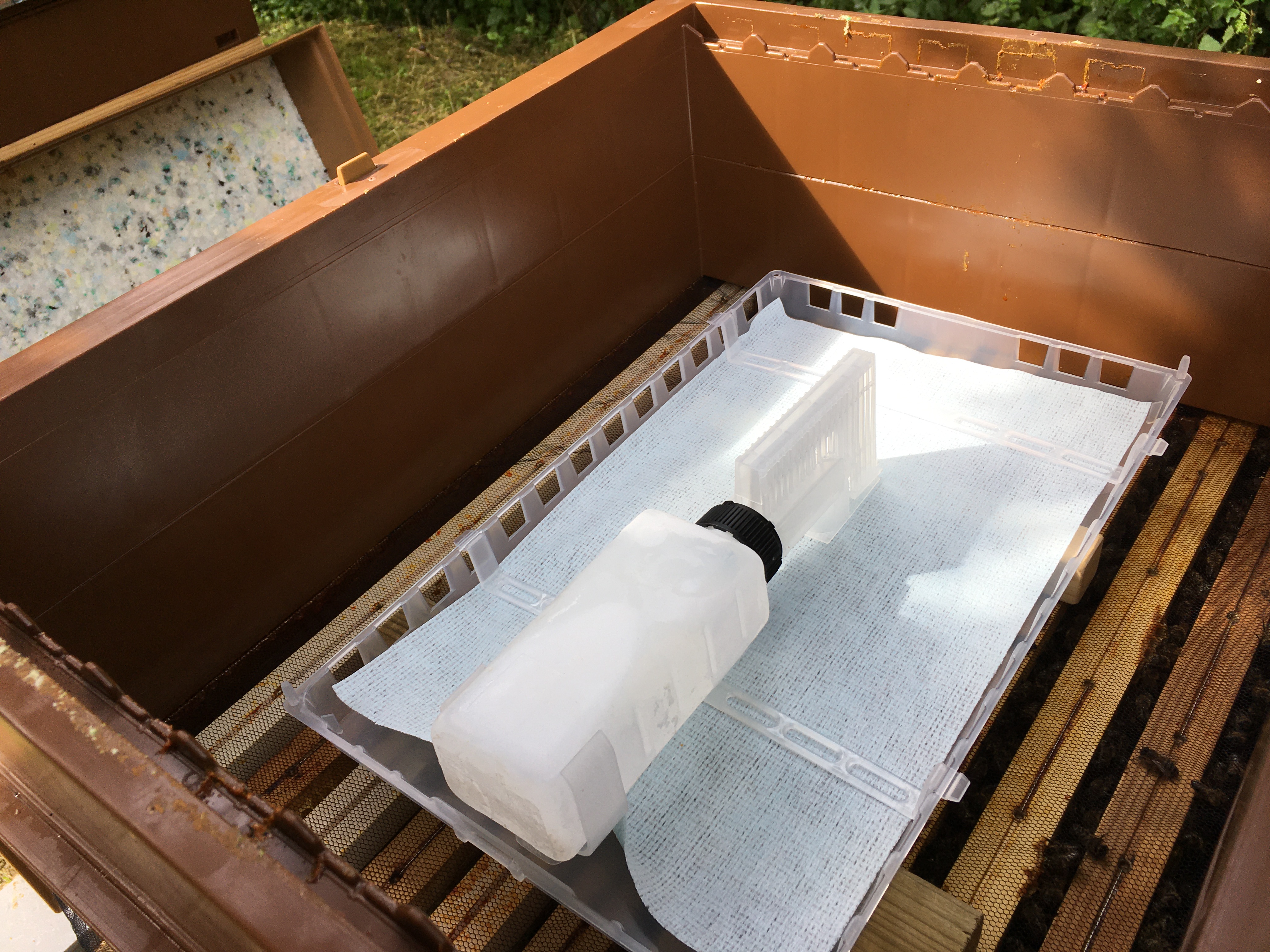 Et bien non ! Ce ne sont pas des médicaments… Ils n’ont pas d’AMM, pas de notice et aucun test n’a été réalisé sur les animaux. La substance a le même nom, mais la pureté du produit n’est pas la même, il n’y a aucune garantie de concentration exacte. Ce sont des produits prévus pour être utilisés comme agents corrosifs ou blanchissants, d’où leur faible prix. Il est interdit de les utiliser et c’est sous votre entière responsabilité, avec un risque pour la santé de vos abeilles, mais aussi la vôtre.